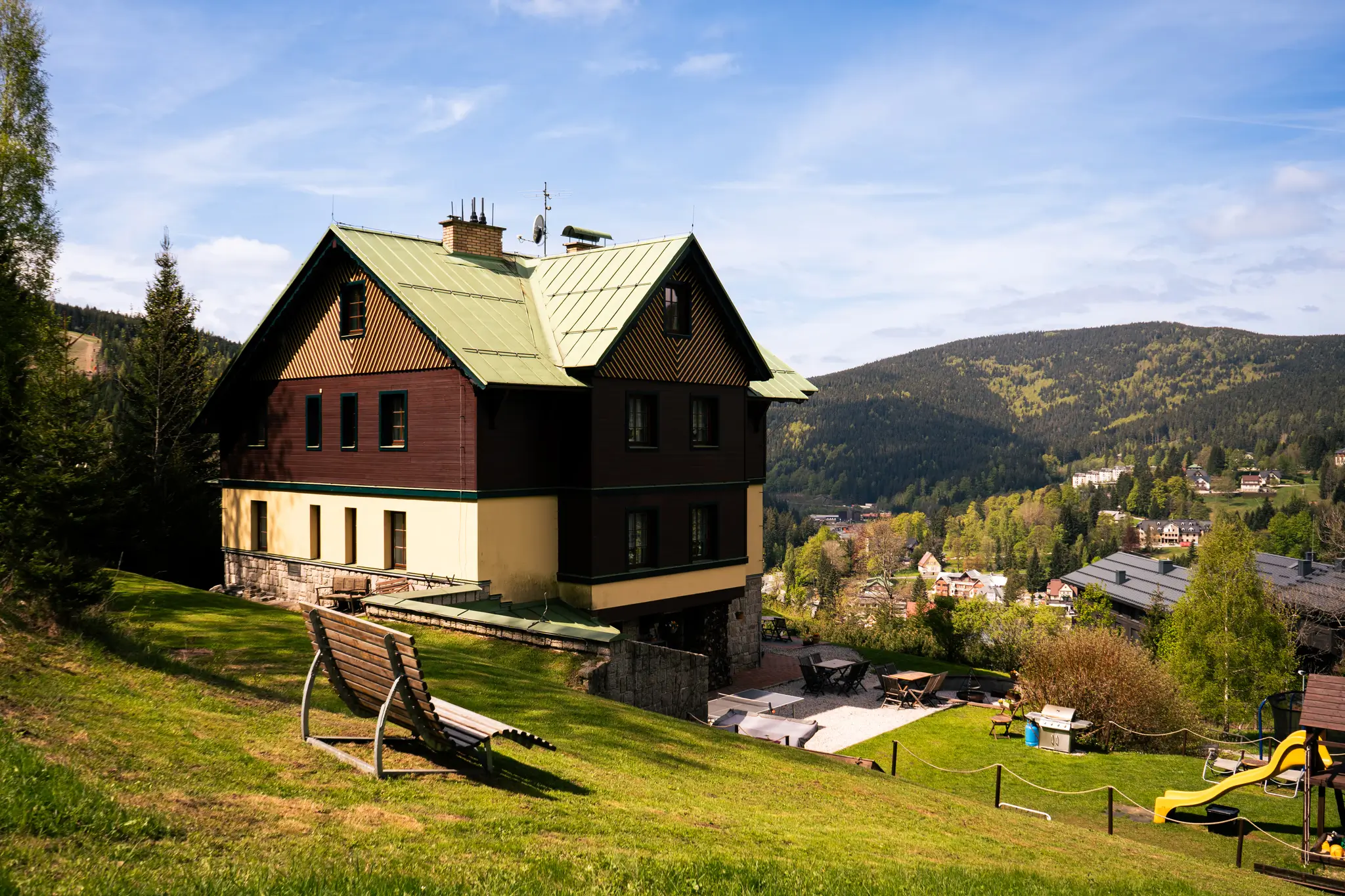 Útulné ubytování na slunném svahu přímo nad centrem Špindlerova Mlýna.